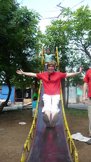 We all woke by 6:30 breakfast at 7:30 and off to Imprhu Institute for human promotion, met the director Fanny and Marvin, went to Casa de La Nina met beautiful people there. We presented the quilts to the Casa de la Nina, they have 25 beds and we had 25 quilts exactly what they needed. We then went to lunch at Ruta Maya, amazing buffet. Like the rain forest cafe except real trees and amazing food. We then went to the market and met at an Imprhu school, we walked through the market and saw all types of goods for sale, after walking through the market we played with the chidren in a playground: soccer, teetertawter, slide, skipping rope etc. everyone had a blast it was very difficult to leave. Stopped at El Eskimo for a cold drink and wonderful air conditioning (today was extremely hot mid 30s). Then we went to the Managua dump. Words cannot describe the experience but we all saw hope and community there. We finished our trip at the YMCA ,ACJ and saw the Johns that John built, even today they spoke about how grateful they were for the washrooms, we met Gloria and Cesar and other volunteers, we will be meeting up with some of them again at Rivas later on.